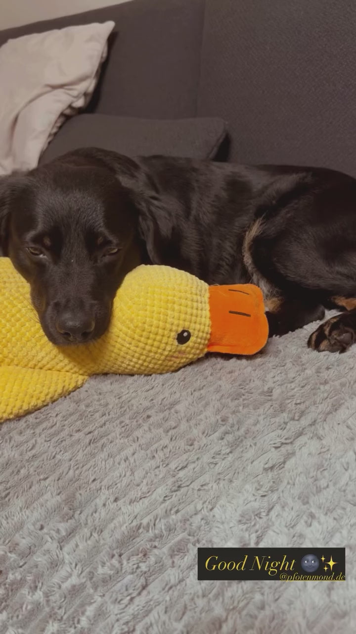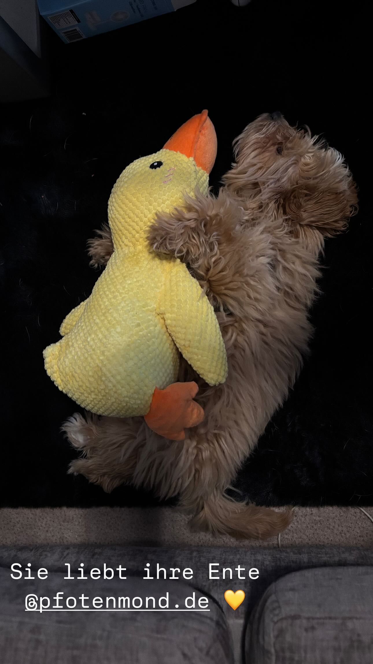 Auf dem Spielzeugmarkt gibt es unzählige Hundespielzeuge – doch die Anti-Stress-Ente ist wirklich einzigartig. Dein Hund wird stundenlang spielen, mit ihr einschlafen und sie liebevoll mit der Nase anstupsen, bis sie leise quakt – ein Anblick, der einfach herzerwärmend ist. Wenn dein Hund einmal allein zu Hause ist, beschäftigt er sich mit seiner Ente, und seine Trennungsangst wird mit der Zeit immer geringer. Und falls die Ente doch nicht hält, was wir versprechen, bekommst du selbstverständlich dein Geld zurück.