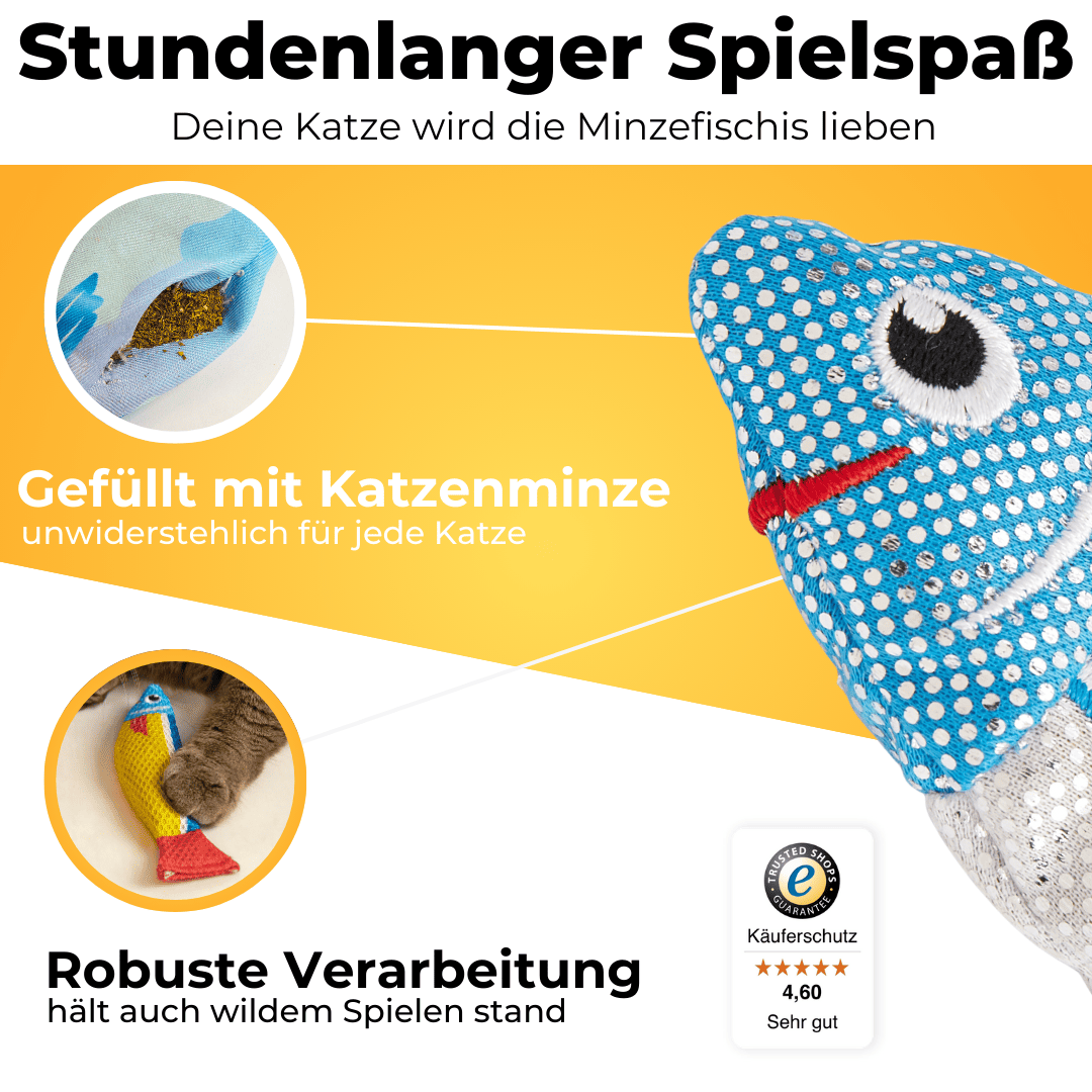 Die Minzefischis sind speziell für langes und intensives Spielen entwickelt. Dank ihrer robusten Verarbeitung halten sie Krallen, Bissen und wildem Spielen problemlos stand. Das strapazierfähige Material sorgt dafür, dass deine Katze lange Freude am Spielzeug hat – selbst bei täglicher Nutzung.