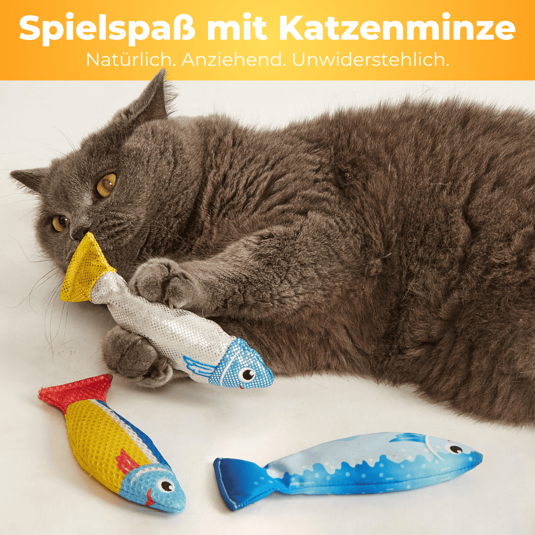 Katzenminze wirkt auf viele Katzen besonders anziehend, da sie natürliche Duftstoffe enthält, die den Spiel- und Jagdinstinkt aktivieren. Der intensive Geruch macht Katzen neugierig, animiert sie zum Spielen, Jagen und Kauen und sorgt gleichzeitig für geistige Auslastung. Nach einer aktiven Spielphase kann Katzenminze zudem beruhigend wirken, wodurch Katzen entspannter und ausgeglichener werden. Die Minzefischis verbinden genau diese Wirkung mit einer robusten, katzengerechten Form. Sie eignen sich ideal zum Tragen, Werfen und Herumkauen. Dank hochwertiger Katzenminze und fischförmigem Design werden sie instinktiv als spannendes Spielzeug wahrgenommen und von den meisten Katzen sofort geliebt.